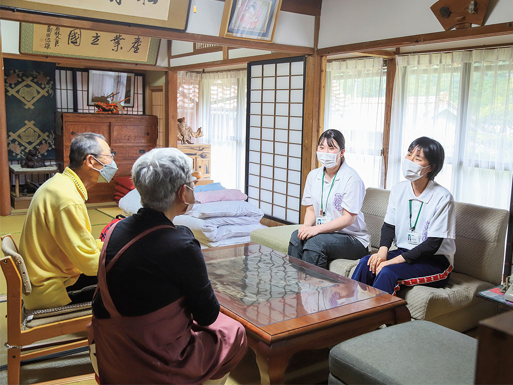 地域の方々の暮らしを知り、抱えておられる不安や想いを伺いながら、コミュニケーション力を高められる実習です。