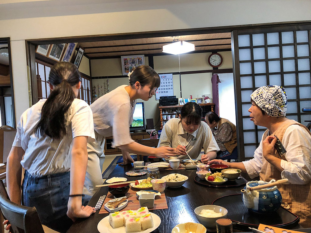 診療所実習中、同じ町内の民泊施設のお宅に宿泊し、食事作りや片づけ、農作業のお手伝いなどを行いながら、食事を共にします。